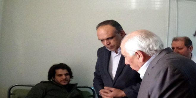 اطلع محافظ درعا محمد خالد الهنوس اليوم على الوضع الصحي لجرحى الجيش العربي السوري الذين يتلقون العلاج في المشفى الوطني بمدينة درعا.