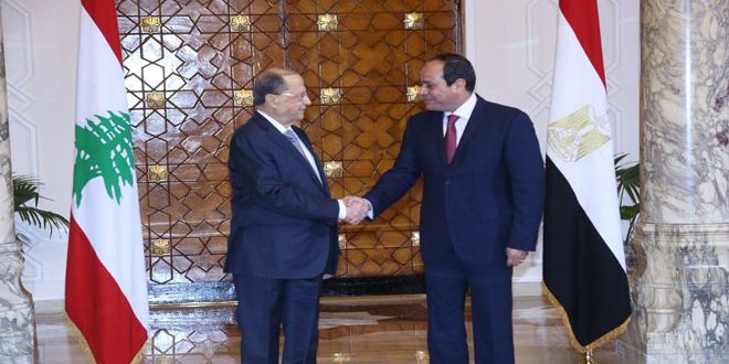 أكد الرئيسان اللبنانى ميشال عون والمصرى عبد الفتاح السيسي على أهمية العمل المشترك في مجال مكافحة الإرهاب ودعم الحل السياسي للأزمة في سورية.