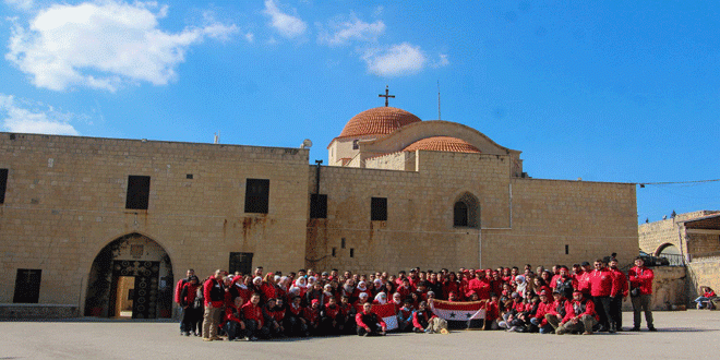 زيارة دير مارجرجس الحميراء البطريركي الواقع بمنطقة المشتاية بحمص والتعرف على تاريخه وتوثيق المعالم الأثرية فيه كانت أحد محوري الجولة السياحية الأخيرة التي قامت بها “الجمعية السورية للاستكشاف والتوثيق” الاسبوع الماضى.