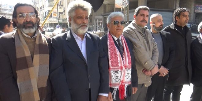 بدوره لفت محمد علي أبو علي من جبهة التحرير الفلسطينية في كلمته إلى البطولات التى يسطرها أهلنا في الجولان المحتل وتأكيدهم أن سورية ستظل قلب العروبة النابض والركيزة الأساسية للأمة مبينا أن وقوف الفلسطينيين اليوم في خندق واحد مع سورية يأتى لإيمانهم بأنها تشكل وفلسطين هوية واحدة ودما ومصيرا واحدا.