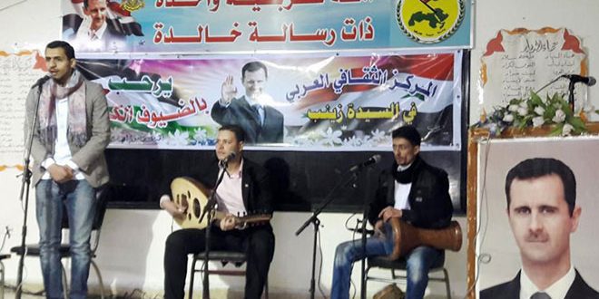 كما أقيم ضمن فعاليات أسبوع “الجولان إرادة وصمود” حفل للأغنية الوطنية في مركز السيدة زينب الثقافي بحضور رسمي وشعبي تفاعل مع الأغاني الوطنية التي قدمها الفنان يوسف عبدو على العود برفقة الفنانين فراس موسى ورئيف إبراهيم وفايز أسعد.