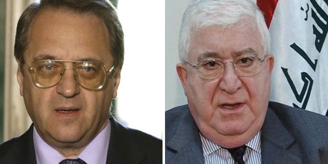 بحث الرئيس العراقي فؤاد معصوم في بغداد اليوم مع المبعوث الخاص للرئيس الروسي إلى الشرق الأوسط نائب وزير الخارجية ميخائيل بوغدانوف الأوضاع في العراق ومستجدات الأزمة في سورية.