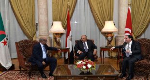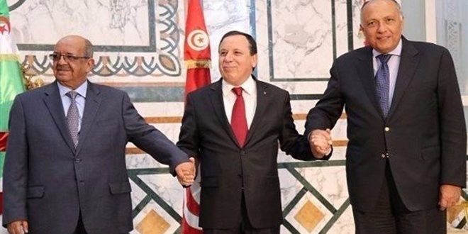أكد وزراء خارجية مصر والجزائر وتونس رفض بلادهم لأي حل عسكري للأزمة في ليبيا وأي تدخل خارجي في شؤونها الداخلية، مبينين أن التسوية لن تكون إلا بين الليبيين أنفسهم.