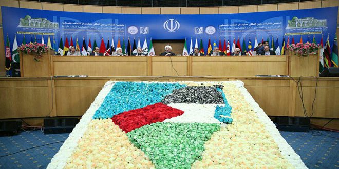 وفي كلمة له خلال مراسم اختتام المؤتمر أكد الرئيس الإيراني حسن روحاني أن السلام والاستقرار لن يستتبا في منطقة الشرق الاوسط في ظل استمرار الاحتلال الصهيوني للأراضي الفلسطينية.