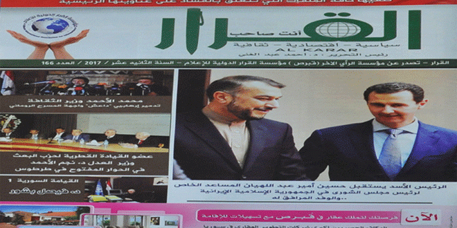 تضمن العدد الجديد من جريدة القرار مجموعة من التقارير والتغطيات الإخبارية التي واكبت انتصارات الجيش العربي السوري على الإرهابيين في مختلف المناطق إضافة الى مواد منوعة في الثقافة والمجتمع والاقتصاد والفن.