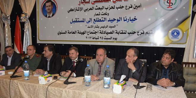 رئيس نقابة صيادلة سورية الدكتور محمود الحسن أكد أن الجهود مستمرة لتأمين مختلف أنواع الدواء للصيادلة ووضعه بخدمة المواطنين داعيا الصيادلة إلى الالتزام بالعمل المهني والنقابي لتحقيق واقع صحي أفضل والإرتقاء بمستوى المهنة فيما استعرض رئيس فرع نقابة الصيادلة بحلب الدكتور عبد الله جراح مجمل التقارير المهنية والتنظيمية والمالية وما