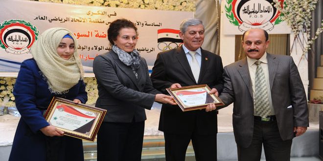 وتضمن الحفل تكريم لاعبي سورية الذين شاركوا بدورة الألعاب الأولمبية في ريو دي جانيرو بالبرازيل التي اقيمت في شهر آب الماضي وهم الرباع معن أسعد والسباحة بيان جمعة والعداءة غفران محمد ولاعب الجودو محمد قاسم ولاعبة كرة الطاولة هبة اللجي وتكريم لجنة توثيق الحركة الرياضية في سورية إضافة إلى تكريم الفائزين في المسابقة الثقافية المركزية التي أقامها مكتب الإعلام المركزي في الاتحاد الرياضي مؤخرا.