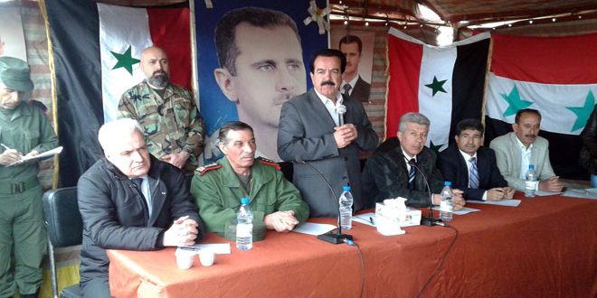 حضر اللقاء عضو قيادة فرع القنيطرة لحزب البعث العربي الاشتراكي الدكتور أحمد الدعاس وقائد الشرطة العميد جاسم العبد الله وأعضاء المكتب التنفيذي ومديرو الدوائر الرسمية الخدمية وحشد من المواطنين.