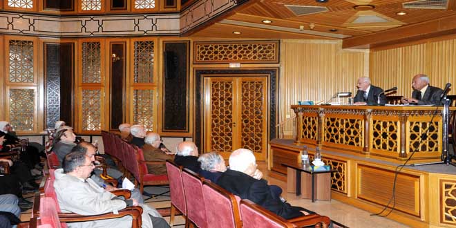 وشدد المحاسني على أن مجمع اللغة العربية بدمشق كان منذ تأسيسه حاضرا في وجدان الأمة مشيرا إلى أن مسار التعريب “لا نهاية له ما دمنا لا نشارك في حركة العلوم الحديثة السريعة التطور وهو مسار يتطلب معرفة دقيقة للغة التي يجري تعريب نصوصها وتعمقا حقيقيا في بحورها حيث قرر المجمع الانضمام إلى المجالات العربية الأخرى في مشروع المعجم التاريخي للغة العربية الذي سيكون مرجعا يشرح ما طرأ على لغتنا من تغيرات والنظر في ارتباطها بمؤثرات مجتمعية إضافية”.
