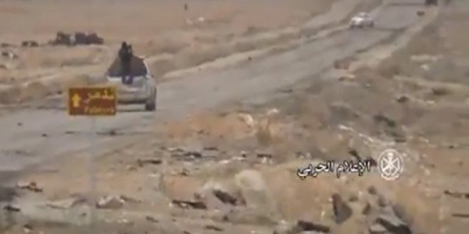 وحدات الجيش بتغطية من الطيران السوري والروسي تلاحق فلول “داعش” الإرهابي على مداخل مدينة تدمر
