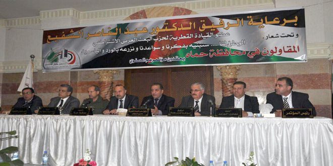 حضر المؤتمر أمين فرع حماة لحزب البعث مصطفى السكري وعدد من أعضاء مجلس الشعب عن المحافظة ومديرو المؤسسات وفعاليات رسمية وحزبية.