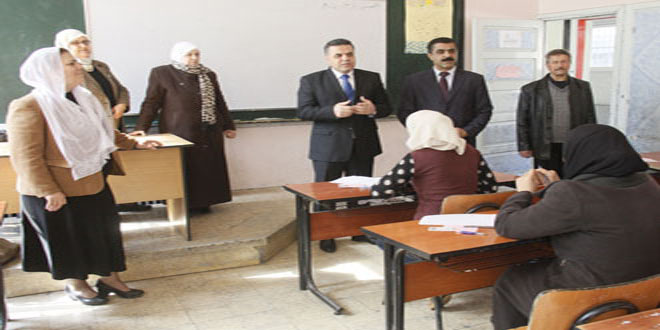 واطلع وزير التربية الدكتور هزوان الوز على سير الامتحان التحريري للمسابقة في عدد من المراكز المعتمدة بدمشق والتقى عددا من المتقدمين واستمع منهم إلى ملاحظاتهم حول أسئلة الامتحان ومستواها ومدى تنوعها لمواد الاختصاص والثقافة العامة واللغة العربية والقانون الأساسي للعاملين في الدولة.