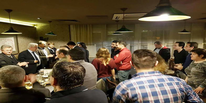 الدارسين في هنغاريا وأعضاء فرع الاتحاد الوطني لطلبة سورية برئاسة ادونيس كساب وعدد من أبناء الجالية السورية وممثل السفارة في فيينا القنصل جابر شموط.