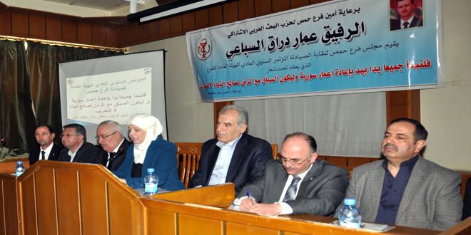 حضر المؤتمر عضو قيادة فرع حمص للحزب وأمين سر نقابة صيادلة سورية وعدد من أعضاء النقابة المركزية ومدير صحة حمص ورؤساء النقابات الطبية