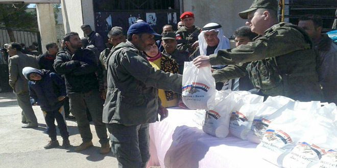 الغذائية مقدمة من روسيا الإتحادية على الأهالي في قرية جبا.