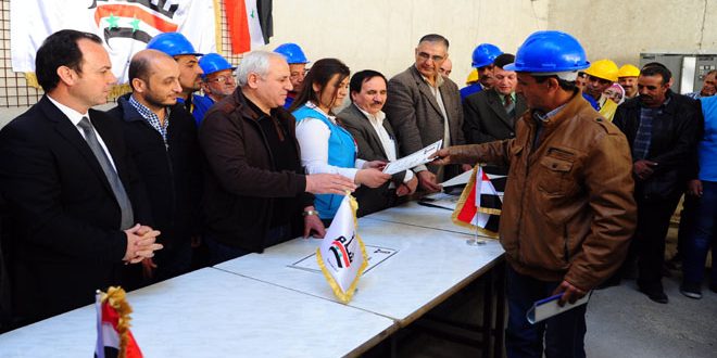 وفي تصريحات لـ ” سانا ” عبر العمال المكرمون عن شكرهم لمحافظة ريف دمشق والجهات الأخرى المشاركة بالتكريم مؤكدين أنه م لن يتوانوا لحظة عن القيام بأي عمل من شأنه دعم الجيش العربي السوري الذي قدم تضحيات كبيرة في سبيل إعادة الأمن والاستقرار لمنطقة وادي بردى.