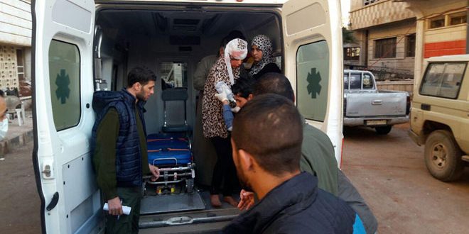 وأفاد مصدر في قيادة شرطة ريف دمشق في تصريح لـ سانا بأن “المجموعات الإرهابية في حي القابون والغوطة الشرقية استهدفت بقذائف صاروخية ضاحية الإسكان التابعة لمخيم الوافدين بريف دمشق ما تسبب بإصابة 6 أشخاص بجروح متفاوتة”.