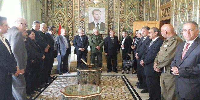 وأوضح جبر غانم أمين فرع الحزب الوحدوي الاشتراكي الديمقراطي في كلمته باسم أحزاب الجبهة الوطنية التقدمية ان سورية رغم الضغوط التي تعرضت لها لم تقبل التراجع عن مسارها المقاوم لذلك كانت هدفا مباشرا لإرهابهم القادم من أنحاء العالم مؤكدا ان صلابة الموقف السوري لم ولن تتغير بفعل أي ضغوط.