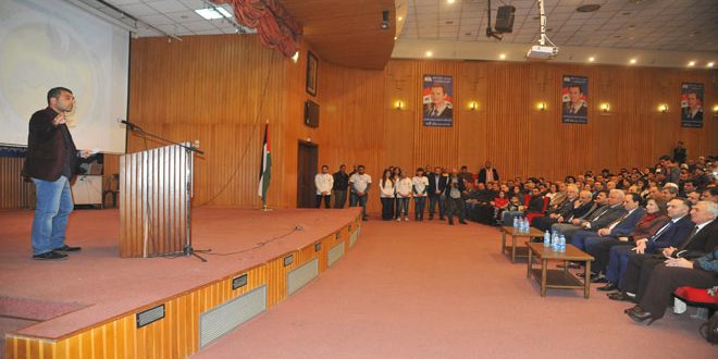 بمناسبة الذكرى الـ 54 لثورة الثامن من آذار نظم فرع جامعة دمشق لحزب البعث العربي الاشتراكي اليوم احتفالا جماهيريا في كلية الهندسة المدنية بجامعة دمشق ومعرضا في كلية الهندسة المعمارية يتضمن أبرز الأعمال الفنية والتصميمات الهندسية لطلاب الكلية.