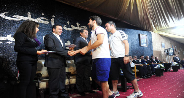 حضر حفل التكريم اللواء موفق جمعة رئيس الاتحاد الرياضي العام وعدد من المسؤولين في محافظة دمشق والمكتب التنفيذي ورؤساء الاتحادات والأندية.