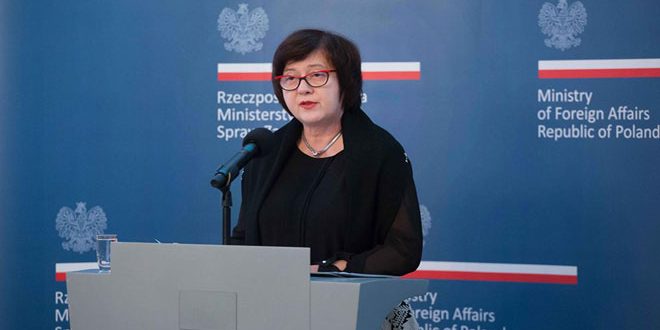 وأعربت نائب وزير الخارجية البولندي عن رغبة بلادها بالتعاون مع سورية على صعيد صون التراث الحضاري السوري الذي تضرر جراء الارهاب وكذلك زيادة المساعدات الإنسانية المقدمة الى سورية كما جددت اهتمام بلادها بتطوير علاقات الصداقة التاريخية القائمة بين البلدين.