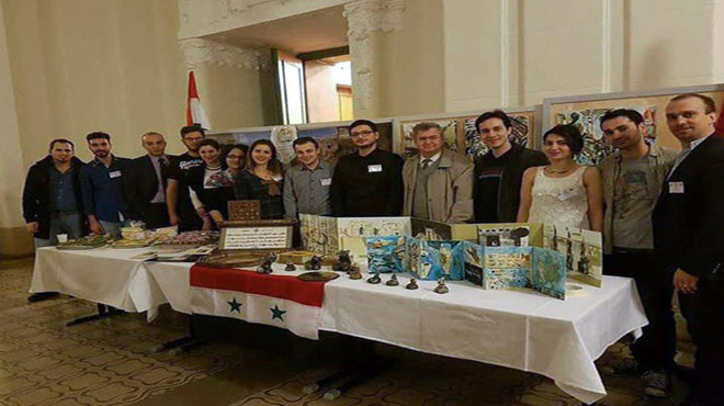 وعرض الطلبة السوريون المشاركون بالمهرجان في إطار تعريف الزائرين بسورية صورا وأعمالا يدوية تظهر الوجه الحضاري لوطنهم مهد الحضارات وموطن الأبجدية الأولى.