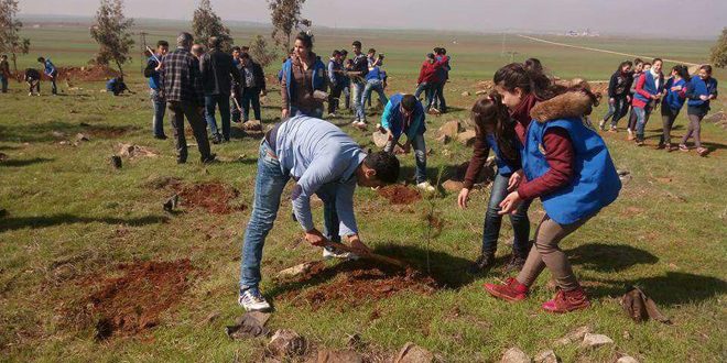 بمناسبة أعياد آذار شارك أكثر من 100 متطوع في حملة تشجير أقامتها رابطة سلمية بفرع حماة لمنظمة شبيبة الثورة في قرية الشيخ علي كاسون بمنطقة سلمية تضمنت زراعة 300 غرسة حراجية متنوعة من أصناف السرو والصنوبر داخل القرية وعلى أطرافها.