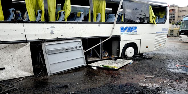 وكان إرهابيون فجروا أول أمس عبوتين ناسفتين قرب مقبرة باب الصغير بدمشق ما أسفر عن عشرات الشهداء والجرحى وإلحاق أضرار مادية بالمقبرة والممتلكات العامة والخاصة.