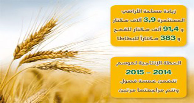 كشف مدير التخطيط والتعاون الدولي في وزارة الزراعة والإصلاح الزراعي الدكتور هيثم الأشقر لصحيفة الثورة في عددها اليوم أن أهم ما يميز الخطة الإنتاجية الزراعية للموسم 2014 ـ 2015 هو زيادة مساحة الأراضي المستثمرة بمقدار 3،9 ألف هكتار وكذلك زيادة المساحات المخططة لمحصول القمح 91،4 ألف هكتار والمساحة المخططة لمحصول البطاطا 383 هكتاراً.