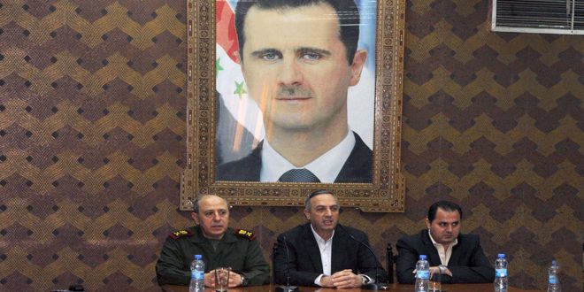 ركز الاجتماع الذي عقده محافظ ريف دمشق المهندس علاء منير ابراهيم وأمين فرع ريف دمشق لحزب البعث العربي الاشتراكي الدكتور همام حيدر مع أهالي منطقتي وادي بردى والمعضمية اليوم على وضع الخدمات والبنى التحتية.