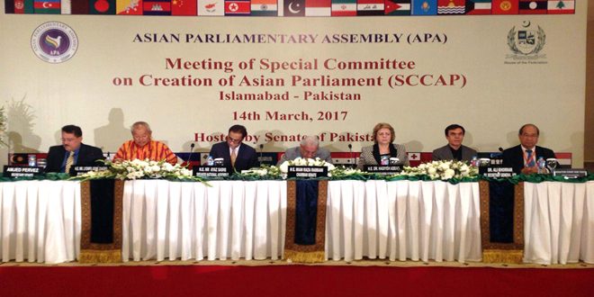 بمشاركة سورية بدأت الجمعية البرلمانية الآسيوية أعمالها في العاصمة الباكستانية إسلام آباد صباح اليوم والتى تبحث في الأوضاع السياسية في القارة الآسيوية ولا سيما قضية الإرهاب الدولي والتعاون الاقتصادي وإنشاء البرلمان الآسيوي.