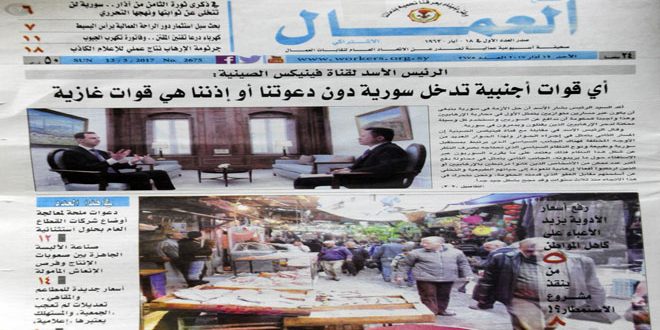 وفي صفحة الدراسات والآراء مقالات بعنوان “جرثومة الإرهاب نتاج عملي للإعلام الكاذب” والأوروبيون وزوابع ترامب” و”هل بات الانكفاء الأمريكي أمرا واقعا” كما تناولت صفحة شباب وتعليم مقالات حول مشروع إحداث جامعة دمشق الثانية.