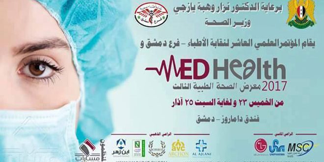 يقام المؤتمر العلمي العاشر لنقابة أطباء دمشق ومعرض الصحة الطبية الثالث “ميد هيلث” في الفترة ما بين ال 23 وال 25 من الشهر الجاري وذلك في فندق داما روز بدمشق.