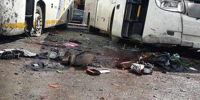 وفجر إرهابيون يوم السبت الماضي عبوتين ناسفتين في مقبرة باب الصغير بدمشق ما تسبب بارتقاء وإصابة عشرات الأشخاص ووقوع دمار كبير في المكان.