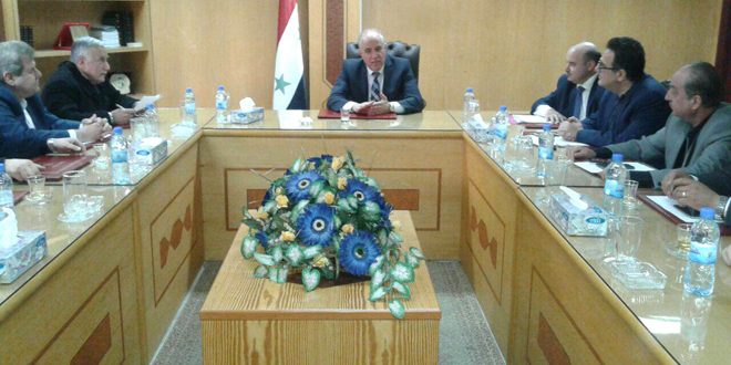 بحث وزير التجارة الداخلية وحماية المستهلك الدكتور عبد الله الغربي اليوم مع مستوردي المواد الغذائية وغير الغذائية والفعاليات الإقتصادية والتجارية سبل تطبيق التعليمات التنفيذية للقرار 377 المتعلق بإستجرار نسبة 15 بالمئة من المواد المستوردة لمصلحة المؤسسة السورية للتجارة وذلك بما يضمن حقوق المستورد وتوفر السلع للمستهلك بالأسواق.