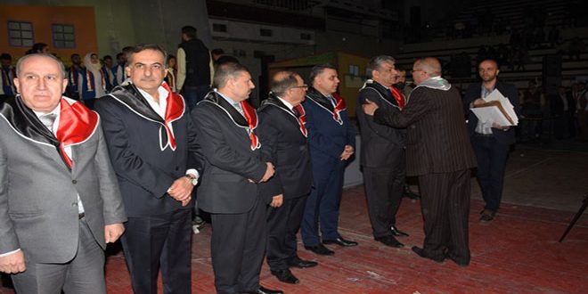 من جانبه أكد وزير التربية الدكتور هزوان الوز أن المعلم يبني الوطن معرفة وعلما ويحرسه في مواجهة الجهل مشيرا الى أننا اليوم نلتقي لنبارك للوطن والأمة بانتصارات الوطن على الإرهاب ولنجدد العهد على متابعة العملية التعليمية والتربوية بإرادة وإصرار أكثر من أي وقت مضى والصمود في وجه كل أعداء الوطن.