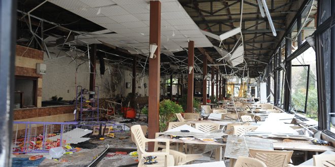 واستشهد أمس الأول عدد من المدنيين وأصيب اخرون بجروح نتيجة تفجيرين ارهابيين انتحاريين بحزامين ناسفين فى مبنى القصر العدلى القديم وأحد المطاعم بمنطقة الربوة في دمشق.