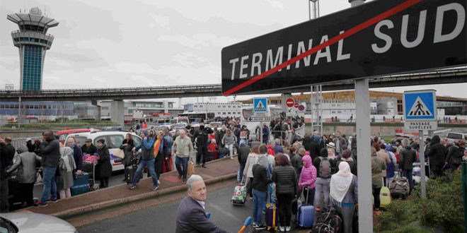 بدورها لفتت سلطات الطيران المدني الفرنسي إلى توقف حركة النقل الجوي بالكامل بعد فرض طوق أمني حول المطار ونشر تعزيزات عسكرية وأمنية.