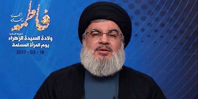 وقال نصرالله إن “كيان الاحتلال الإسرائيلي يتدخل في كل يوم بحجج متنوعة ويقوم بقصف مواقع الجيش السوري من أجل تقديم الدعم والمساندة لداعش أو غيره من التنظيمات الإرهابية” مشيرا إلى أن كيان الاحتلال ورئيس حكومته خائف من هزيمة تنظيم “داعش” الإرهابي في سورية لأن هذه الهزيمة هي نجاح لمحور المقاومة وفشل للمخطط الذي دعمته “إسرائيل” على مدى ست سنوات.