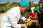 وزع مركز التنسيق الروسي في حميميم اليوم مساعدات غذائية على الأهالي في قرية الجنديرية بريف اللاذقية بالتزامن مع وضع نقطة طبية لمعاينة المرضى وتقديم العلاج والأدوية اللازمة لهم.