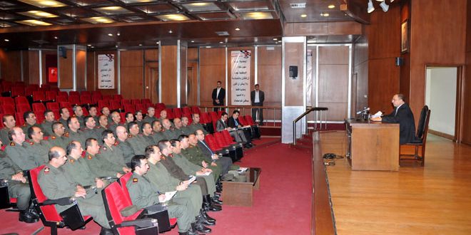 وبين الوزير الشعار أن المهام الملقاة على عاتق قوى الأمن الداخلي جسيمة وكبيرة في ظل هذه الحرب الإرهابية الشرسة التي تتعرض لها الدولة السورية مشددا على القيام بمهام استثنائية لمكافحة الإرهاب وتأمين الاستقرار وتحقيق النظام العام حتى تعود سورية واحة أمن وأمان وتعود عجلة الحياة إلى وضعها الطبيعي.