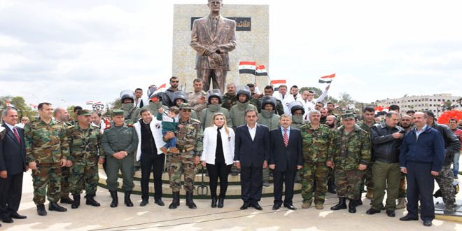 أزيح الستار في حلب اليوم عن النصب التذكاري للقائد المؤسس حافظ الأسد في ساحة الرئيس بمركز المدينة وذلك ضمن احتفال جماهيري نظمته محافظة حلب بالتعاون مع جمعية شباب الصمود والتصدي الوطنية.