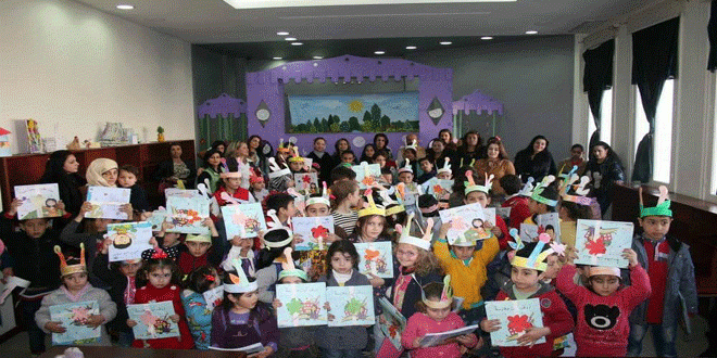 المشغولات اليدوية كانت أولى فقرات الفعالية التي تعرف خلالها الأطفال على كيفية التعامل مع الورق والألوان بأسلوب شيق مفعم بالحس الفني حيث أوضحت المهندسة عبير عمران منسقة الأنشطة في المكتبة أن برنامج الفعالية مدروس بعناية لتعليم الطفل قيما فنية وأخلاقية تساعده على التميز في حياته اليومية لافتة الى أن الجمعية تخصص بشكل دائم مقاعد مجانية لهذه الشريحة ضمن برامجها المقررة كما أن هذه الفعالية ستكون حافزا للأطفال للتسجيل في المكتبة وزيارتها بشكل دائم والاستفادة من برامجها .