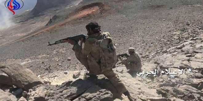 ونقلت وكالة الانباء اليمنية”سبأ” عن مصدر عسكري يمني قوله إن”مدفعية الجيش اليمني واللجان استهدفت تجمعات وتحصينات ومواقع قوات النظام السعودي ومرتزقته في جبل جحفان ومعسكر عطار وحامية وموقع قزع ومواقع البيت الابيض والشبكة والمنتزه والدخان بمنطقة جيزان نتج عنها سقوط قتلى وجرحى في صفوفهم” مضيفا أن”جنديين سعوديين قنصا في موقعي المعنق والكرس”.