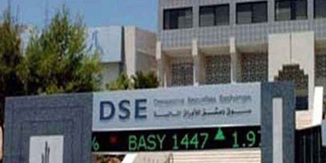 ارتفع مؤشر سوق دمشق للأوراق المالية بنتيجة جلسة تداولات اليوم 21.47 نقطة عن الجلسة الماضية حيث أغلق على قيمة 2976.28 نقطة وبنسبة تغير موجبة قدرها 0.73 بالمئة مع حجم تداول قدره 52089 سهما موزعة على 67 صفقة بقيمة تداولات إجمالية بلغت 21.941 مليون ليرة.