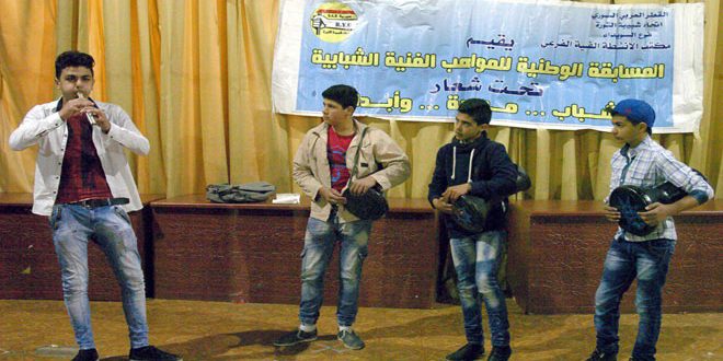 انطلقت في محافظة السويداء اليوم المرحلة الثالثة من المسابقة الوطنية للمواهب الفنية الشابة التي ينظمها فرع اتحاد شبيبة الثورة على مستوى المحافظة لمرحلتي التعليم الأساسي والثانوي للفئة العمرية بين 13 و16 سنة و ذلك بمشاركة 357 شابا و شابة.