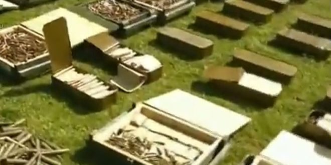 ضبطت الجهات المختصة في محافظتي حماة واللاذقية بالتعاون مع الأهالي وبعد عمليات متابعة ورصد كميات كبيرة من الأسلحة والذخائر كانت معدة لتهريبها إلى التنظيمات الإرهابية المنتشرة بريفي حماة واللاذقية الشماليين.