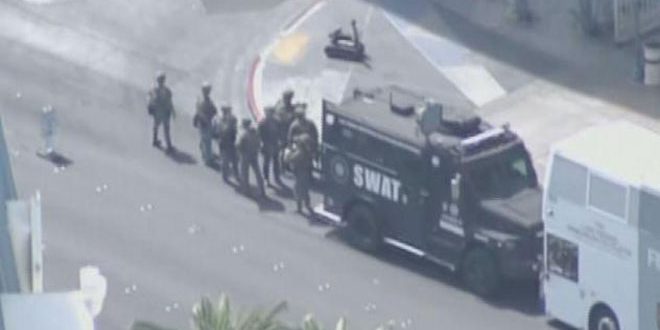 ونقلت وكالة الصحافة الفرنسية عن الشرطة قولها على موقع “تويتر” إن: “قسما من جنوب جادة لاس فيغاس مغلق بسبب وجود مشتبه به على متن حافلة” مضيفة: “الرجاء تجنب المنطقة”.