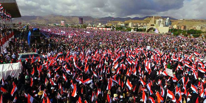 تظاهر مئات آلاف اليمنيين اليوم في ميدان السبعين بالعاصمة صنعاء في الذكرى الثانية لبدء العدوان السعودي على الشعب اليمني.