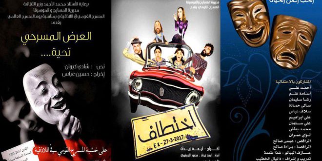 تحتفي مديرية المسارح والموسيقا في وزارة الثقافة بيوم المسرح العالمي الذي يصادف 27 آذار من كل عام عبر سلسلة من العروض والاحتفاليات في دمشق واللاذقية وطرطوس.